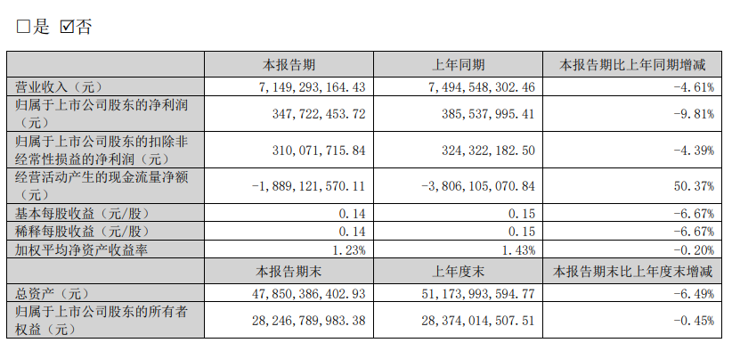 业绩方面,东方雨虹一季度营业收入为71.49亿元,同比下降4.61%;归属于上市公司股东的净利润为3.48亿元,同比下降9.81%。