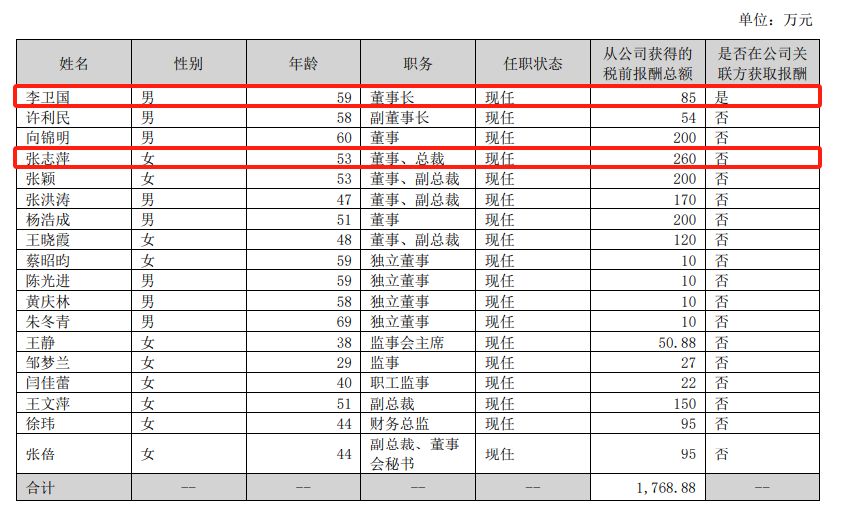 据乐居财经查阅,李卫国担任东方雨虹董事长,2023年领薪85万元。另外,董事、总裁张志萍领薪260万元,居高管之首。