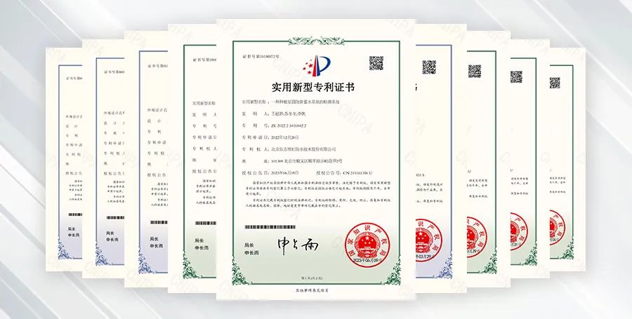 在2024年的上半年,雨虹桃花源零坡度有组织防排蓄水系统成功斩获9项中国专利证书。这一系列证书不仅涵盖系统内部至关重要的自主研发成果,如可伸缩排水槽、软连接管等排水组件等,更彰显出该系统在智能化领域所取得显著突破:创造性地融入前沿5G检测与报警系统,为用户提供了更为安全、高效的解决方案。