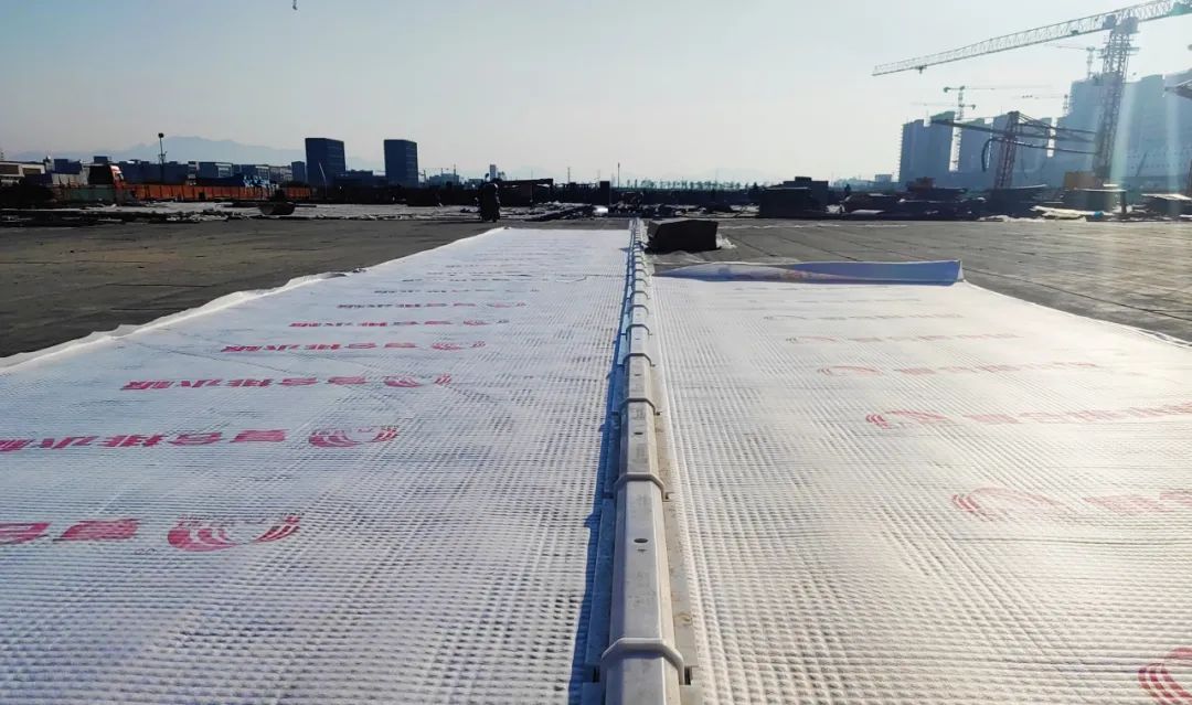 在地下底板防水工程以外,浙江温州龙港市龙湖片区综合开发项目顶板防水工程选用雨虹桃花源零坡度有组织防排蓄水系统。