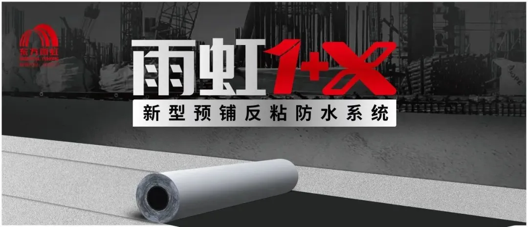其中,“雨虹1+X”新型预铺防水系统核心主材——BSP360背粘型高分子自粘胶膜防水卷材不仅具有突出的防水性能,能够有效防止地下水渗透,下表面高分子自粘胶还能够与底层其他防水材料直接满粘,实现与任意高分子卷材或沥青基类卷材复合相融,从而达到“两道一级”防水效果,确保地下工程持久安全。