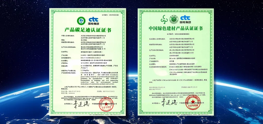 在低碳技术与绿色产品研发应用方面,东方雨虹依托科研平台、产业基础及资源优势等综合实力,紧密围绕低碳环保、提质降耗、协同增效等方面重点发力,并由此取得一系列显著成果:不仅先后斩获国内首张“绿色建材认证证书”、行业首张“产品碳足迹认证证书”,更有数款产品获得三星级/二星级“绿色建材产品”认证、中国绿色产品认证、中国环境标志产品认证、欧盟CE产品认证,美国CRRC(冷屋面协会)认证、德国EC1认证、英国UKCA认证、美国农业部USDA生物标签认证等海内外权威认证。