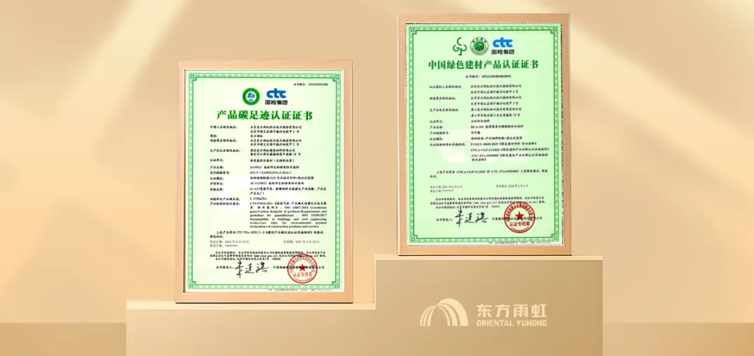 在特种功能防水材料国家重点实验室为核心的高能级创新平台的驱动下,东方雨虹紧密围绕低碳环保、提质降耗、协同增效等方面重点发力,先后推出聚沥系统、外墙外保温防水透汽系统、新型HDPE自粘胶膜组合防水系统、“森林回响”系列等,持续提升产品力与服务力;联合英国建筑研究院开展针对两款自主研发的HDPE防水卷材产品的生命周期环境影响评估,完成国内首个在BRE全球认证体系下的防水卷材环境产品声明;运动地坪系统解决方案全塑型塑胶跑道通过国际田联认证,标志着东方雨虹运动地坪系统解决方案的产品质量、安全、环保等各项技术指标达到国际田联认证标准,符合国际专业水平;凭借在低碳发展方面的主动探索与创新实践,获得中国国检测试控股集团股份有限公司颁发的防水行业首张“产品碳足迹认证证书”,进一步彰显绿色产品力、生产力综合优势。
