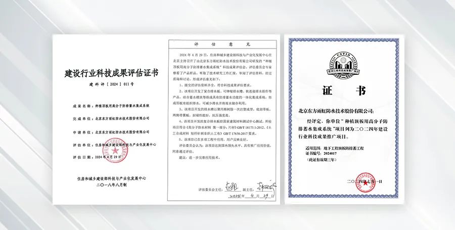 随着全球环保意识的增强、城市化进程的推进、海绵城市理念的提出,如何在满足民众基本居住需求的同时,促进“人·建筑·自然”和谐共融,已逐渐成为建筑建材行业重点关注的“课题”。雨虹桃花源零坡度有组织防排蓄水系统的问世,正是东方雨虹精耕这一“课题”所取得的重要成果。2024年,凭借科技创新、技术指标、性能品质等综合优势,雨虹桃花源零坡度有组织防排蓄水系统接连获得《建设行业科技成果评估证书》《2024年科技建设行业科技成果推广项目证书》两项荣誉认可,不仅标志着该系统达到国内领先水平,更为海绵城市建设、行业可持续发展树立起新标杆。