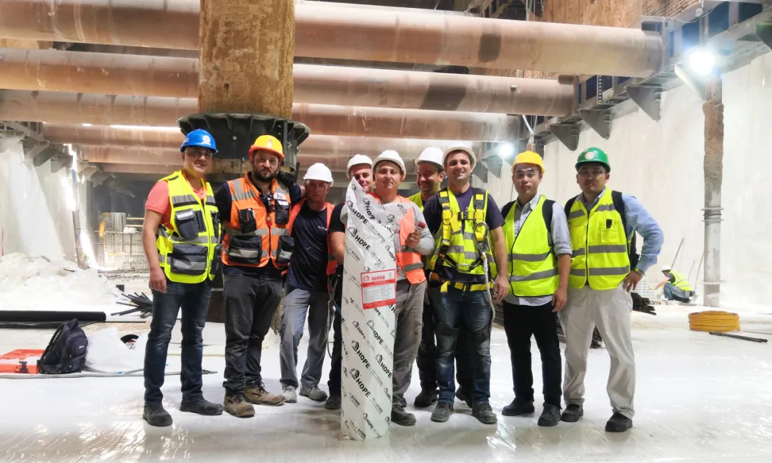 基于《建筑与市政工程防水通用规范》(GB55030-2022)严格标准以及城市轨道交通建设难点痛点,东方雨虹于2024年初推出新型HDPE自粘胶膜组合防水系统。该系统专为解决隧道、地铁等地下工程防水难题而生,应用卷材具有自重轻、透光率高,软韧好焊接等特点,可有效提升施工效率和工程质量。目前,该系统已在北京某地铁项目中得到成功应用,并获得深圳地铁设计单位肯定,荣获2024年深圳市工程建设领域创新成果竞赛银奖。