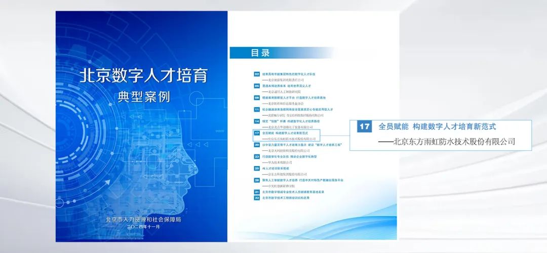 近期,“AI+教育创新与人才发展大会暨首届北京数字人才发展大会”在北京市海淀区中关村国际创新中心开幕。会议期间,北京市人社局发布北京市在推进数字人才培育方面的显著成果和创新举措,并揭晓首批《北京数字人才培育典型案例》。东方雨虹凭借在数字人才培养方面的突出表现,成功入选首批十佳典型案例名单。