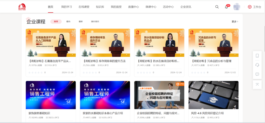 在此基础上,东方雨虹依托人工智能等技术,进一步深化知识管理与技能服务,构建起L1-L5多层级知识库体系;开发高效学习平台,为员工提供丰富便捷的学习资源与参考依据。此外,通过人工智能数字助手与线上机器人问答系统,企业能够为员工提供及时且精准的解答与支持,显著提升工作效率与学习体验。