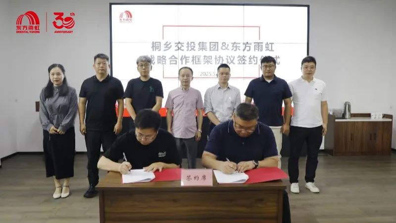 2025年5月16日,东方雨虹工建集团浙江特区(以下简称“东方雨虹”)与桐乡市交通建设投资集团有限公司(以下简称“桐乡交投”)在嘉兴桐乡正式签署战略合作框架协议。双方将围绕交通基础设施建设、综合公共交通体系应用等领域展开深度合作,共同探索创新技术与服务模式,助力区域高质量发展。
