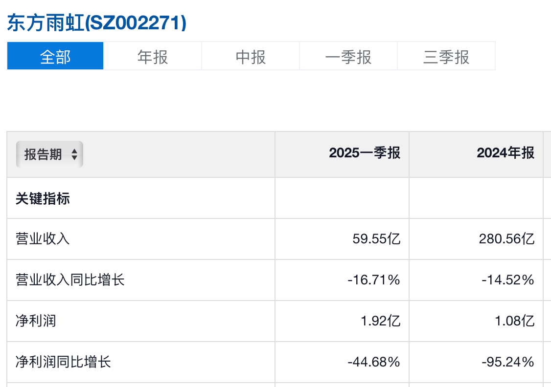 至今年一季度,东方雨虹的业绩同样没见起色。其营收同比下滑16.71%,仅为59.55亿元;归属上市公司股东净利润1.92亿元,同比下降44.68%。