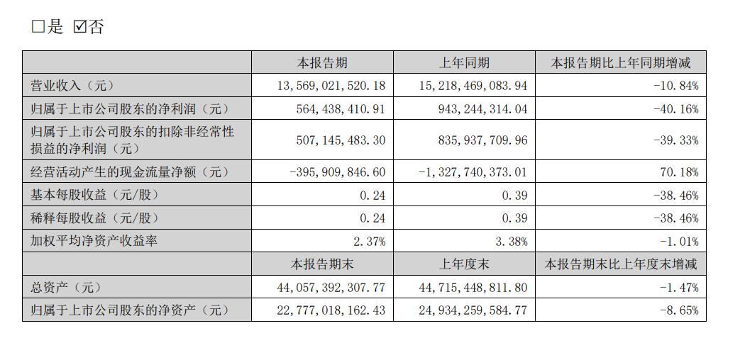 2025上半年,东方雨虹营业收入135.69亿元,同比减少10.84%;归属于上市公司股东的净利润5.64亿元,同比减少40.16%。