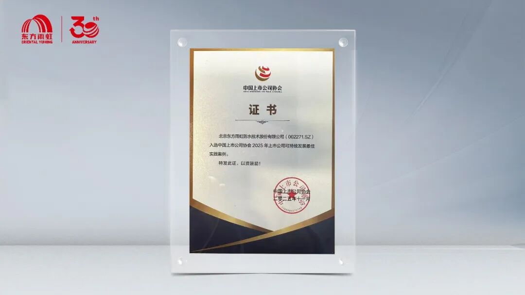 近日, 中国上市公司协会 在北京举办2025年上市公司可持续发展大会。大会汇聚监管机构、国际组织、500余位上市公司及近百家境内外相关机构代表,共同围绕可持续发展与价值创造开展深入交流,并对实践成果突出的企业进行表彰。 东方雨虹 凭借“以绿色环保建材产品助力建筑行业低碳发展”的实践案例,入选“2025上市公司可持续发展最佳实践案例”。