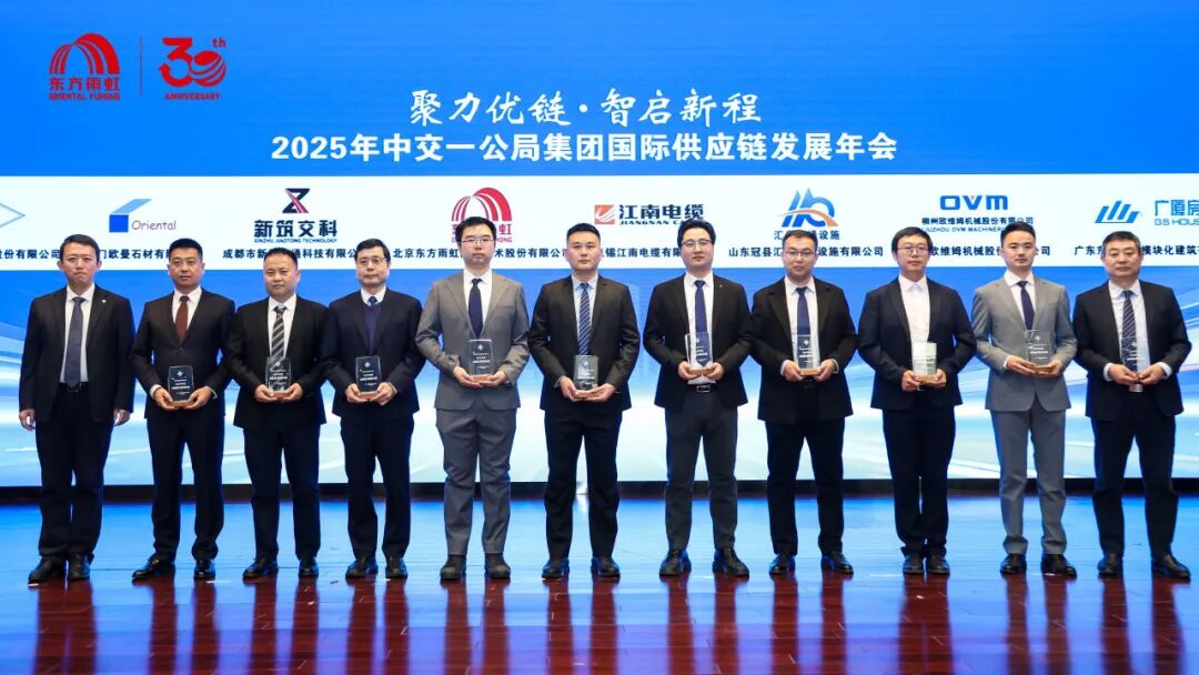 近日,中交一公局集团2025年国际供应链发展大会于北京隆重召开。大会以“聚力优链,智启新程”为主题,汇聚产业链上下游领军企业代表,共同探讨国际供应链韧性构建与价值升级。东方雨虹海外发展集团国际工程业务部总经理寇佳楠受邀出席,并在高层对话环节分享行业见解。会上,东方雨虹凭借出色的供应链服务能力,获授“A级优秀供应链”称号,彰显中资供应链企业的标杆地位。