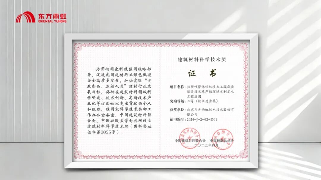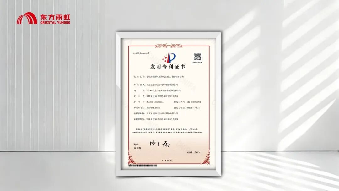 面对严苛环境下的工程需求,东方雨虹研发的“大幅宽热塑性聚烯烃防渗土工膜”,在创新解决大型防渗工程关键难题的同时,2025年获得一项国家发明专利(专利号:ZL202411634887.X)和一项实用新型专利(专利号:ZL202422790856.5)。