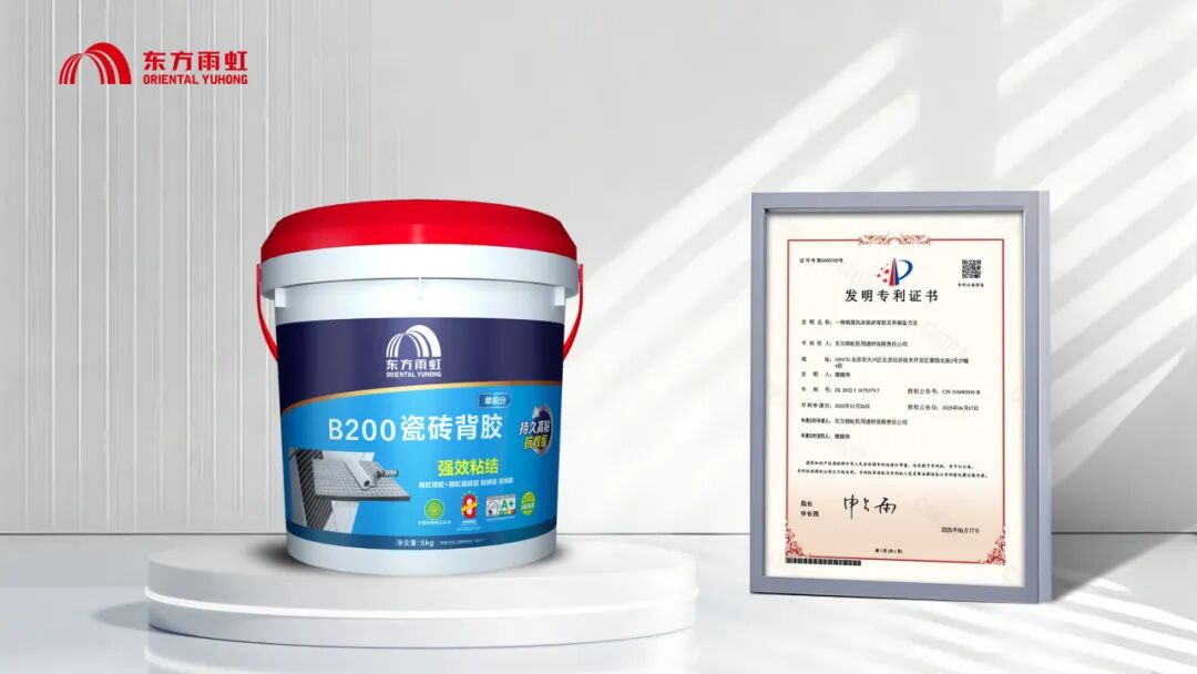 2025年,东方雨虹的技术创新正从核心防水领域向建筑辅材全领域扩展。其中,在2025年获得国家发明专利(专利号:ZL202211675379.7)的“雨虹B200瓷砖背胶”便是其中显著代表。