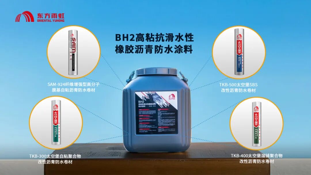 针对施工过程中的具体痛点,东方雨虹开发了一系列专项技术解决方案。“BH2高粘抗滑水性橡胶沥青防水涂料”在2025年获得国家发明专利(专利号:ZL202510060336.5),有效解决侧墙传统涂料流挂、粘结强度低及与卷材复合滑移等行业共性难题。