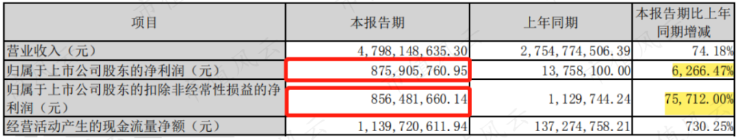 8月25日,华昌化工披露了2021年半年报。2021年上半年公司营业收入较2020年同期增长74.18%,归母净利润和扣非后归母净利润分别是去年同期的62.7倍和757.1倍!