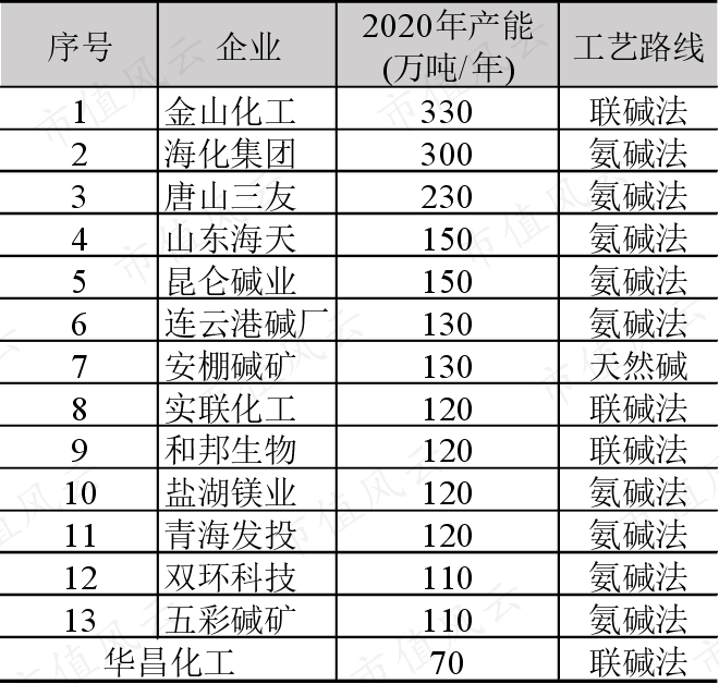 2020年华昌化工的实际年产量为68.91万吨,按照产量计算,只占当年国内纯碱产量的2.45%。