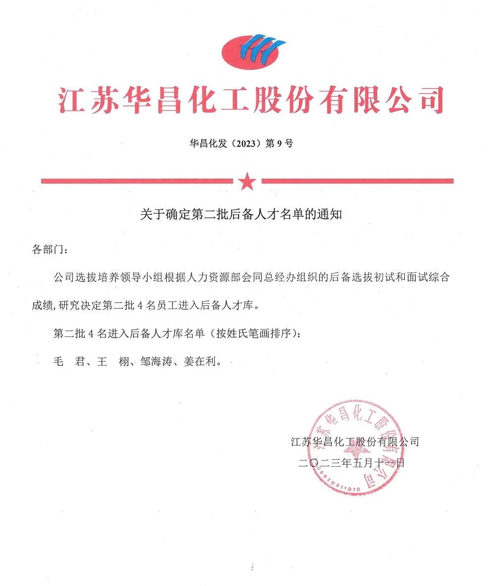 为更好地推进公司管理人员队伍建设,优化管理队伍结构,发掘和培养有志于为企业发展做贡献的管理人才,华昌化工于2023年元月正式启动年度后备人才选拔工作。