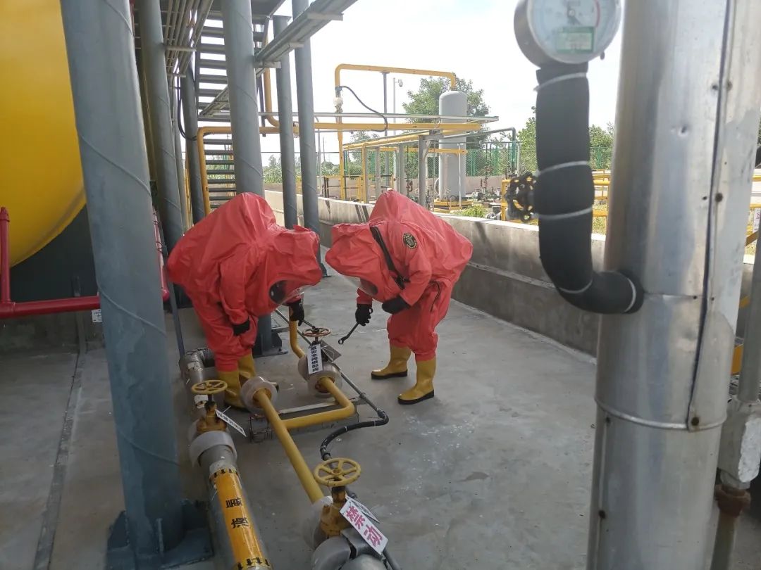 积极组织开展应急演练,如:空分罐区液氧泄漏事故应急预案演练、合成氨厂2#液氨充装台液相法兰泄漏应急预案演练、华源生态液氨泄漏演练等。在现场统一指挥下,各应急救援小组成功完成各项预案演练。
