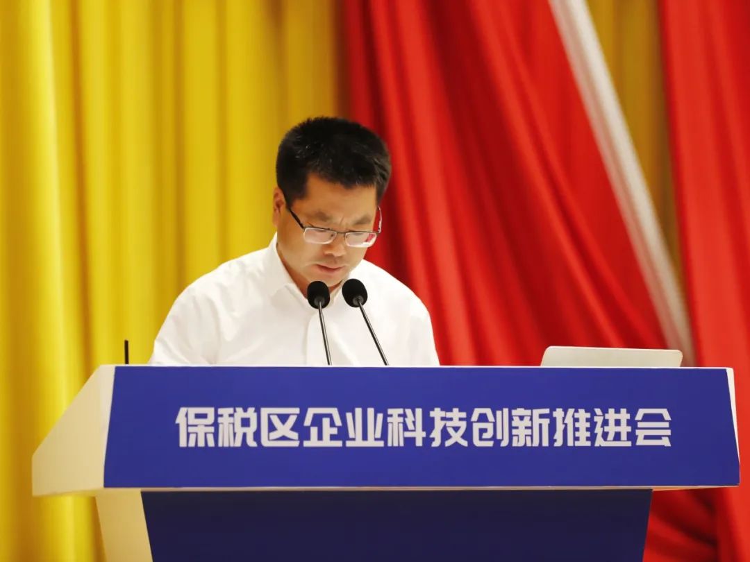 会议总结了保税区企业科技创新工作成果,部署了下阶段工作重点,并为科技创新先进企业颁奖。华昌化工在2022年度保税区企业研发费用税前加计扣除排名中名列前茅,市委副书记、副市长李炳龙为“2022年度保税区科技创新先锋企业”授牌,副总经理李长胜代表公司上台接牌。
