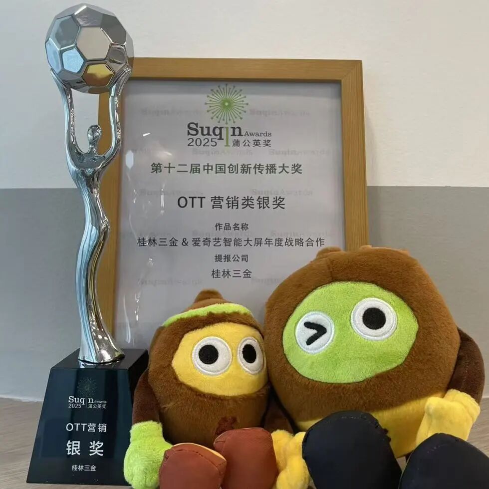 近日, 桂林三金 与 爱奇艺 智能大屏开展的年度战略合作项目,接连荣获三项行业权威大奖——CAMA 2025中国广告营销大奖OTT类银奖、第十二届蒲公英奖OTT营销类银奖及未来营销大奖年度创新OTT营销奖。这一系列荣誉,不仅彰显了双方在创新营销方面的强大实力,也标志着该项目在市场竞争与专业领域中获得双重认可。