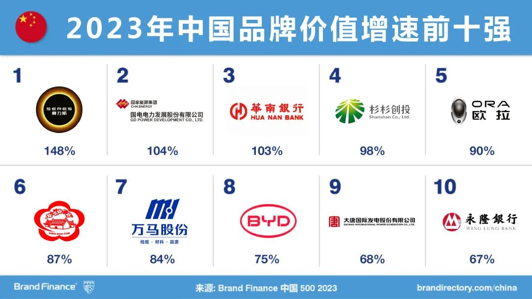 登上该榜单的品牌有:赛力斯汽车(148%)、国家能源集团国电电力发展股份有限公司(104%)、华南银行(103%)、杉杉创投(98%)、欧拉(90%)、杏花村汾酒(87%)、万马股份(84%)、比亚迪(75%)、大唐国际发电股份有限公司(68%)、永隆银行(67%)。
