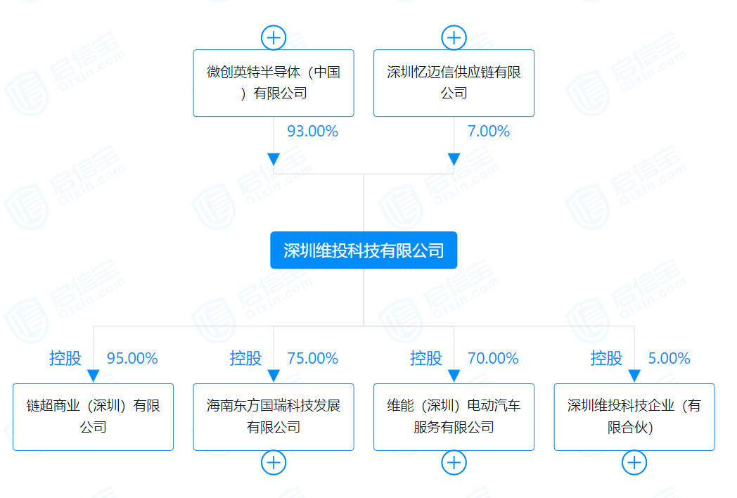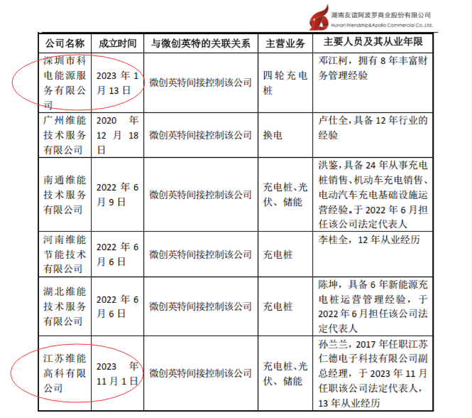 从股权关系看,维能(深圳)电动汽车服务有限公司控制深圳维能动力科技有限公司、深圳维能微电科技有限公司、深圳市科电能源服务有限公司、河南维能节能技术有限公司等多家友阿股份公告过的公司。深圳维投科技有限公司则是维能(深圳)电动汽车服务有限公司持股70%的股东,前者股权穿透后的股东是微创英特与深圳忆迈信供应链有限公司。