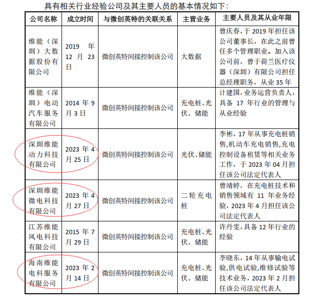 《每日经济新闻》记者注意到,公告列出了微创英特旗下的多家储能、光伏、大数据等领域公司,包括维能(深圳)大数据股份有限公司、维能(深圳)电动汽车服务有限公司、深圳维能动力科技有限公司、深圳维能微电科技有限公司、河南维能节能技术有限公司等多家企业。