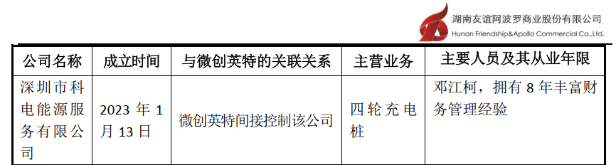 深圳维投科技有限公司的业务涵盖充电桩、光伏、储能,总经理是计建国。公告披露,计建国是公司的业务运营负责人,具备17年行业管理与从业经验。同时,友阿股份在公告中表示,该等公司聚拢了大量具备储能、光伏、新能源、大数据、充电桩等相关业务的运营管理能力和运营管理经验的人才,且已形成了24项与前述业务相关的专利、软件著作权等知识产权。