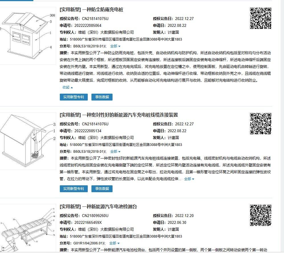《每日经济新闻》记者查询专利信息发现,从2022年6月8日开始,计建国才开始申请有关新能源方面的专利,诸如“交流充电桩的接线检测装置”“新能源汽车电池检测台”“密封性好的新能源汽车充电桩线缆连接装置”“防尘防雨充电桩”。