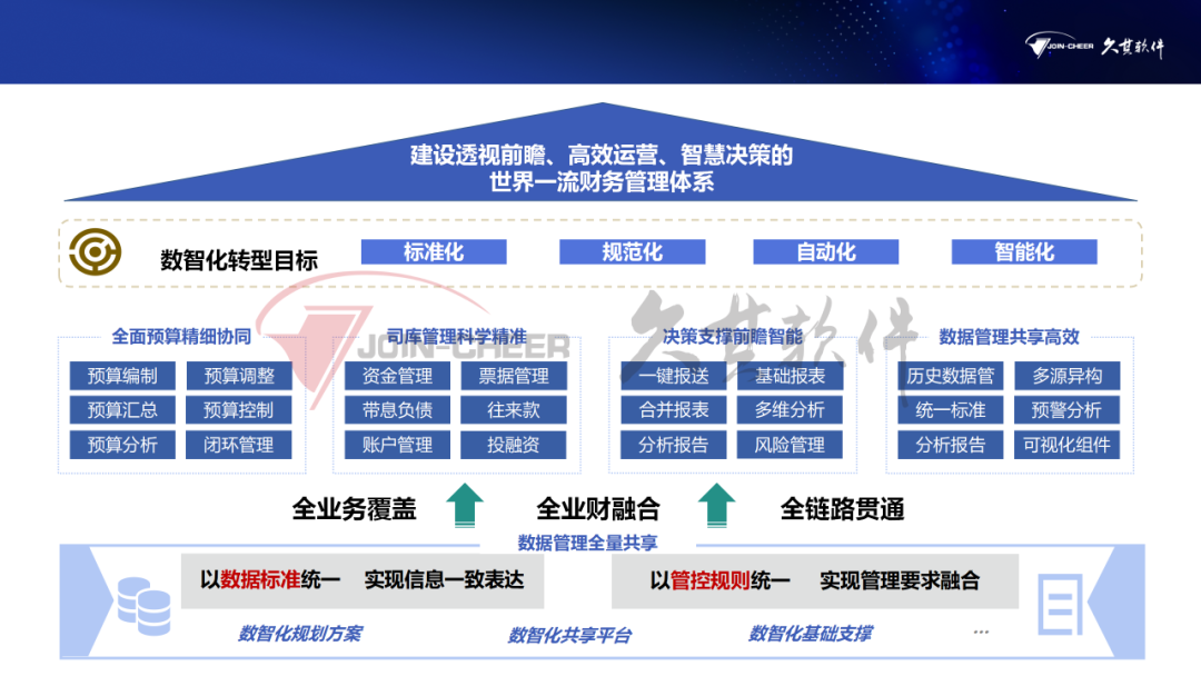 久其软件将依托新一代女娲平台,为宁夏交建投构建以司库管理为核心,全面预算、决策支持与数据管理深度融合的一体化财务共享平台,打通数据链路、推动业财协同、实现资金可视可控,夯实集团智慧财务管理的数字底座。