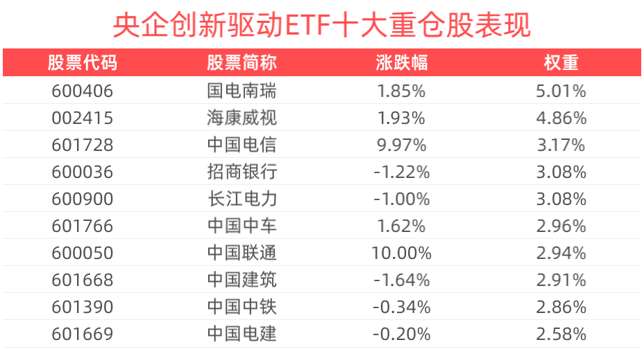 央企创新驱动ETF紧密跟踪中证央企创新驱动指数,中证央企创新驱动指数从国资委下属央企上市公司中,综合评估其在企业创新和盈利质量方面的综合情况,选取较具代表性的100只上市公司证券作为指数样本,以反映较具创新活力的央企上市公司证券的整体表现。