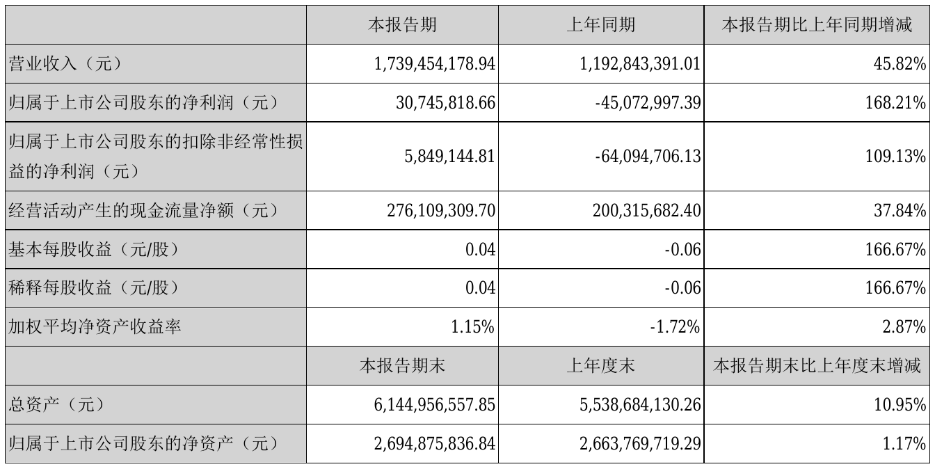 挖贝网8月24日,亚太股份(002284)近日发布2021年半年度报告,报告期内营业收入1,739,454,178.94元,同比增加45.82%;净利30,745,818.66元,同比扭亏为盈。