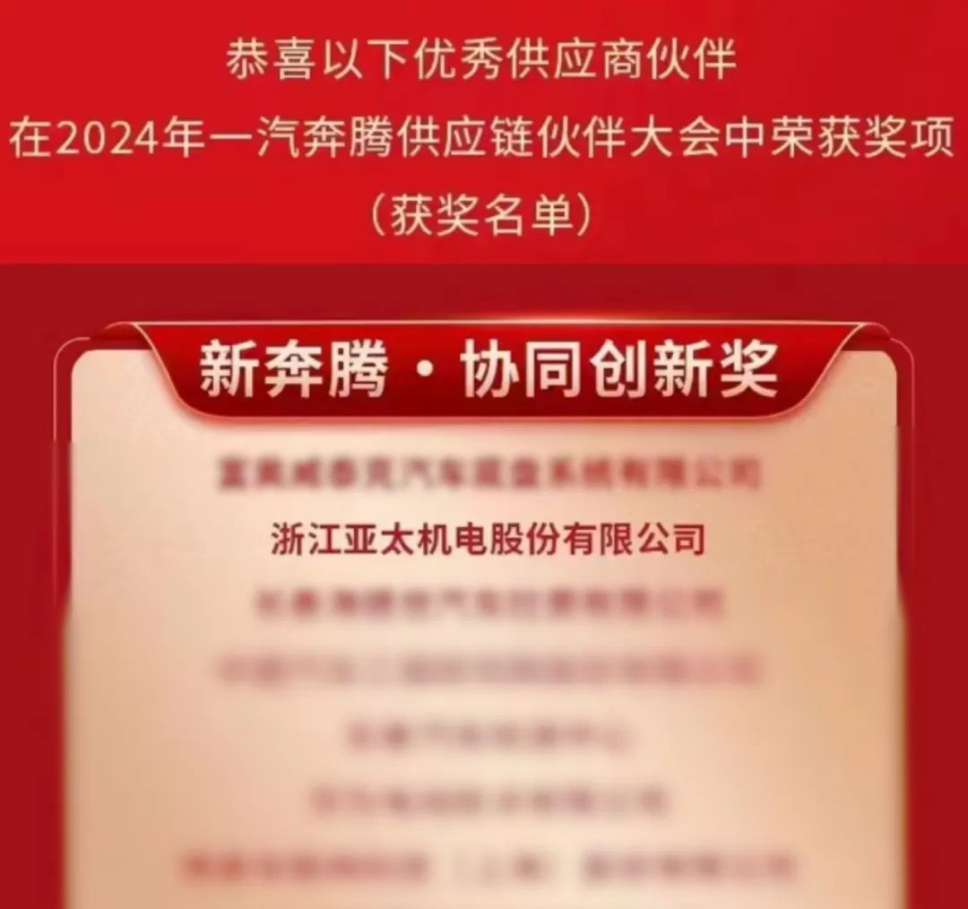 随着汽车行业持续的创新和变革,亚太股份将继续发挥卓越的品质和创新能力,与一汽奔腾等合作伙伴共同迎接新的挑战和机遇,为中国汽车行业的高质量发展提供亚太力量。