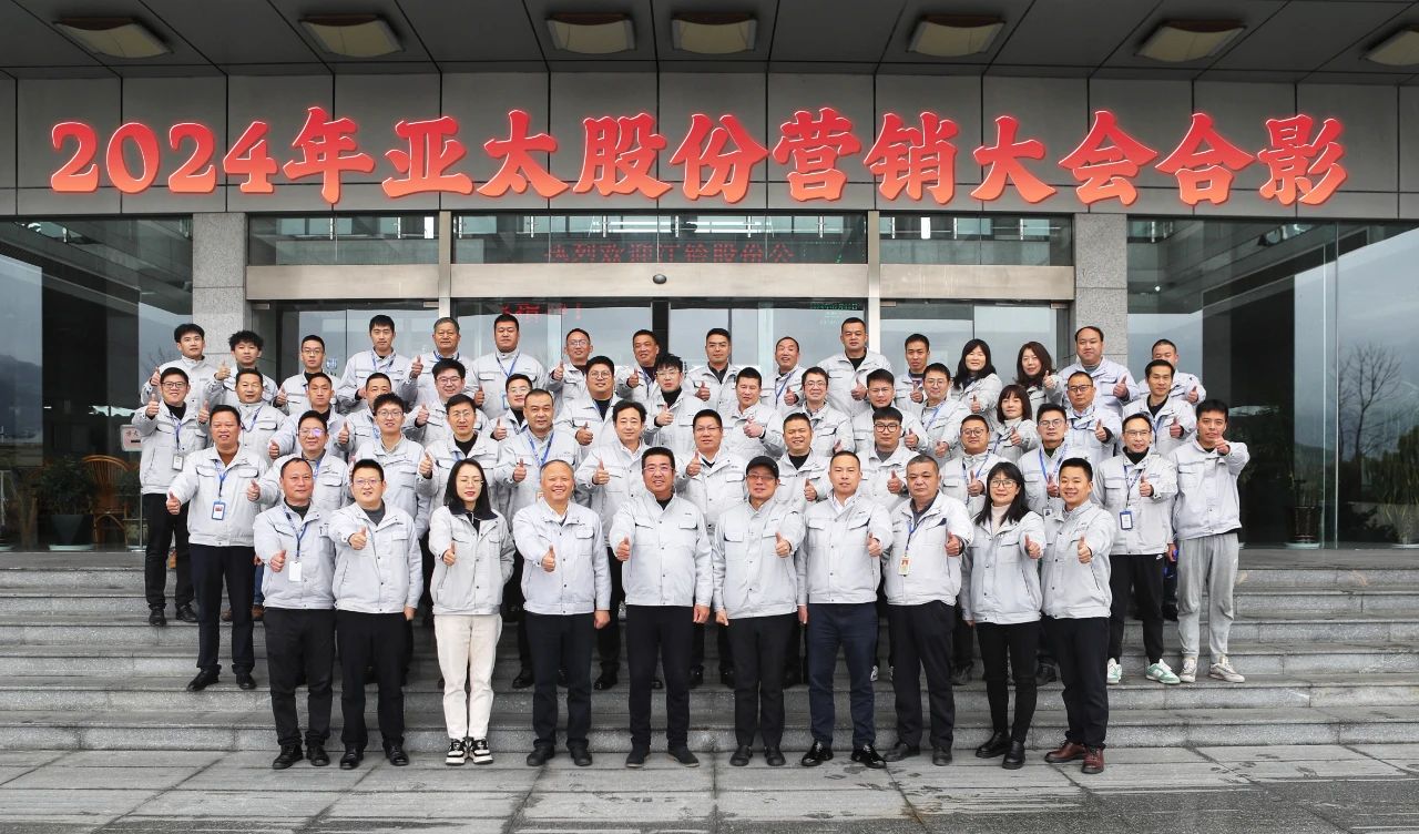 2月3日,亚太股份2024年度营销大会在公司多功能厅顺利召开。亚太股份董事长黄伟中、总经理施兴龙及各主管副总、总监出席会议,营销中心全体员工及相关部门负责人参会。