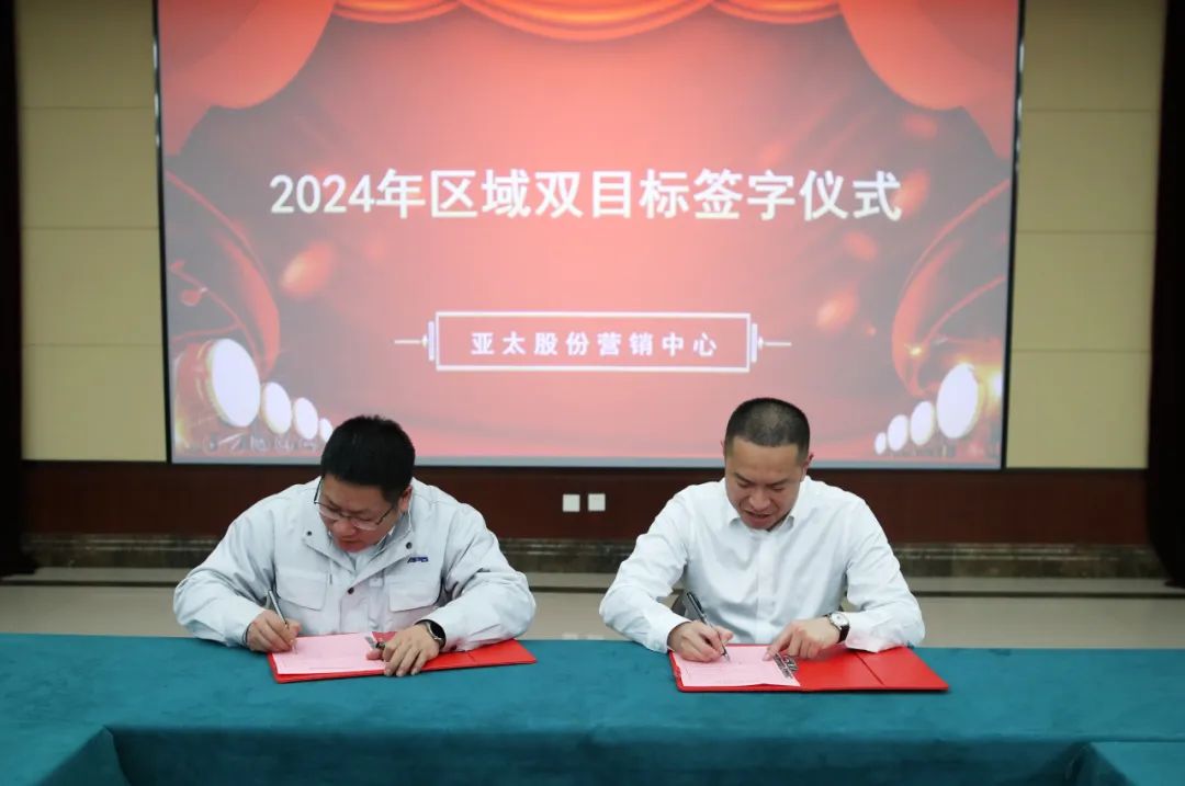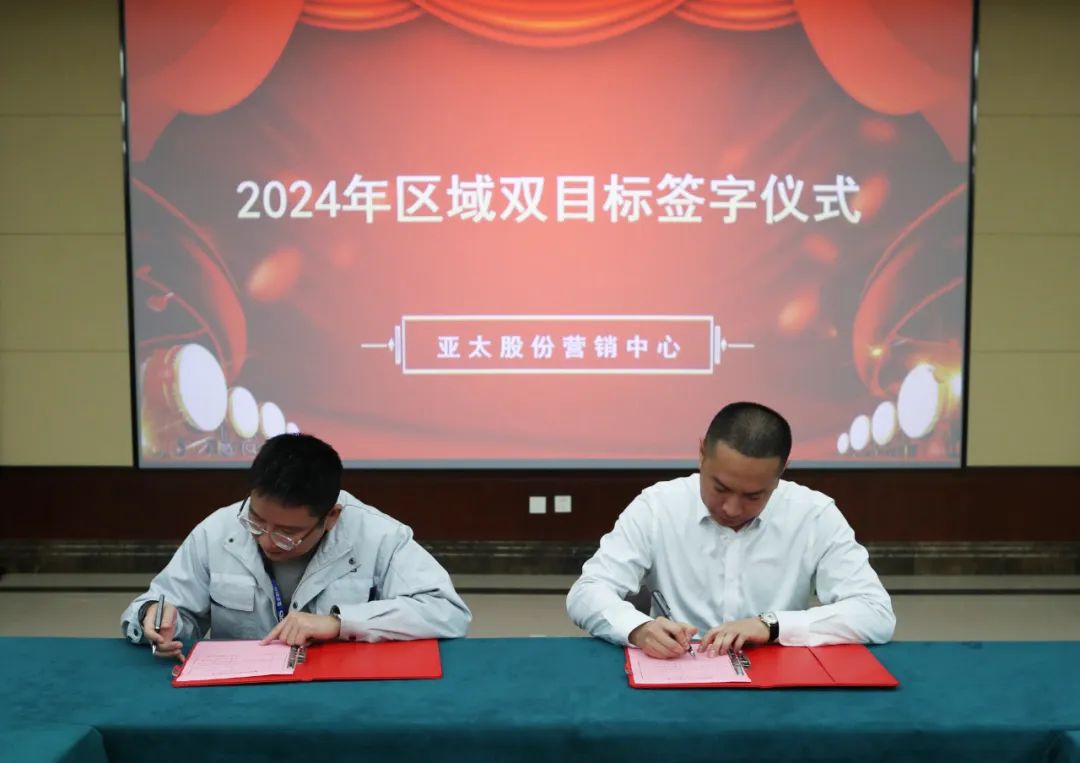 为进一步压实和明确工作责任,锚定前进方向,确保2024年营销目标的顺利达成,营销中心总经理陈勇、国际销售总经理马洪启与各区域负责人签订目标责任书。