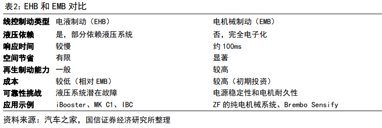 线控制动技术(Brake-by-Wire,BBW)是汽车制动系统的一次重大创新,通过电子信号传输控制指令,消除了机械或液压连接的复杂性。线控制动系统核心是将制动意图(通过踏板输入)转化为电子信号,由电子控制单元(ECU)处理后,控制车轮上的制动器执行制动动作。线控制动主要有电液制动(EHB,亚太股份对应产品称为IBS)和电机械制动(EMB)两种类型。前者的原理是ECU根据制动踏板位置信号控制液压压力实现制动,与现有液压系统兼容,但仍依赖液压组件,响应时间较EMB稍慢。后者则是完全电子化,电机直接在每个车轮上施加制动力,无需液压系统,但仍需权衡冗余安全性与成本控制问题。