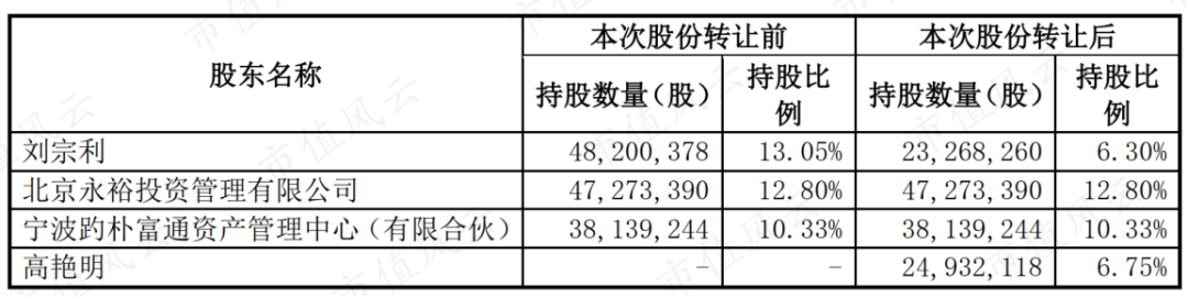 但2021年1月29日,可能由于股价快速回落,事情再出变数,刘宗利和永裕投资的交易告吹,转头就和自然人高艳明达成协议,将6.75%股权转让给后者。