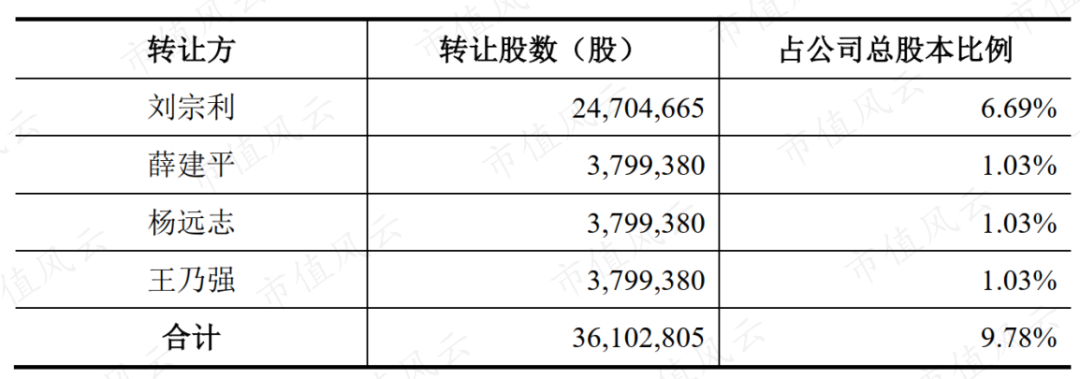 1、11月8日,刘老板等4名董监高向宁波趵朴富通资产管理中心(有限合伙)(以下简称“趵朴富通”)转让9.78%股份,交易价格为7.22亿,转让价20元/股。