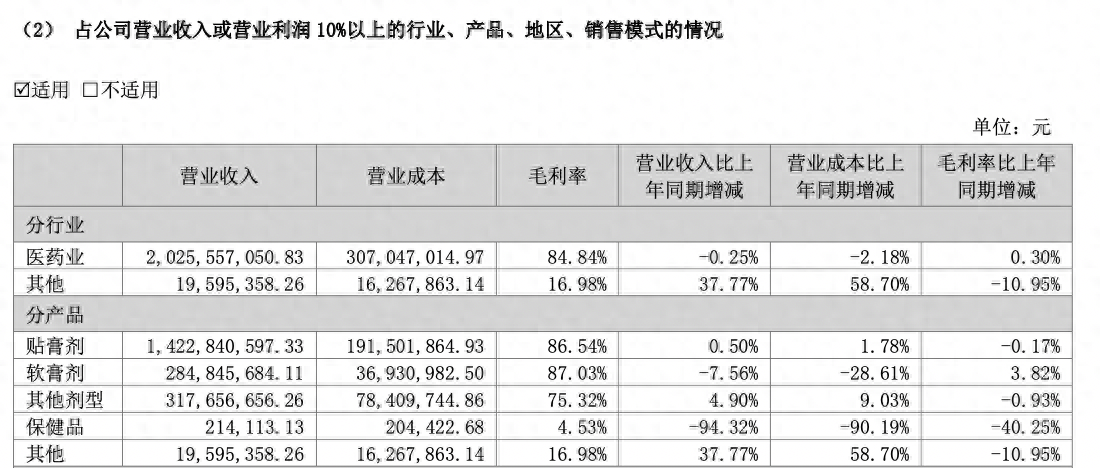 2023年,贴膏剂实现收入14.23亿元,而去年同期达到14.16亿元,该产品增长陷入停滞状态。