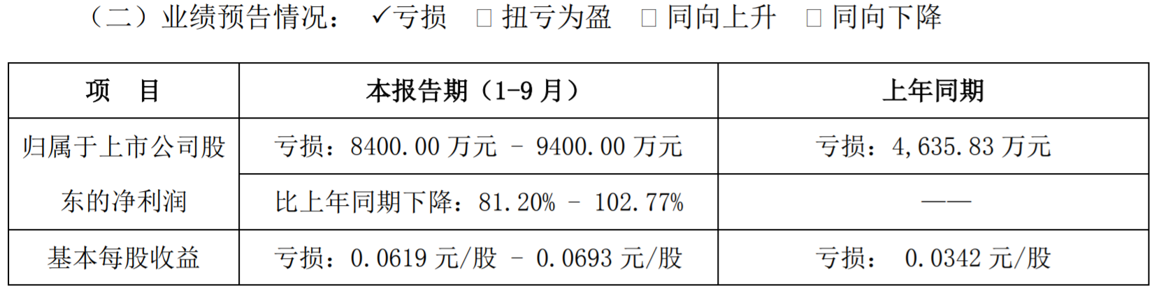 公告显示,预计奥飞娱乐前三季度归属于上市公司股东的净利润亏损8400万元- 9400万元,比上年同期下降81.2%- 102.77%。