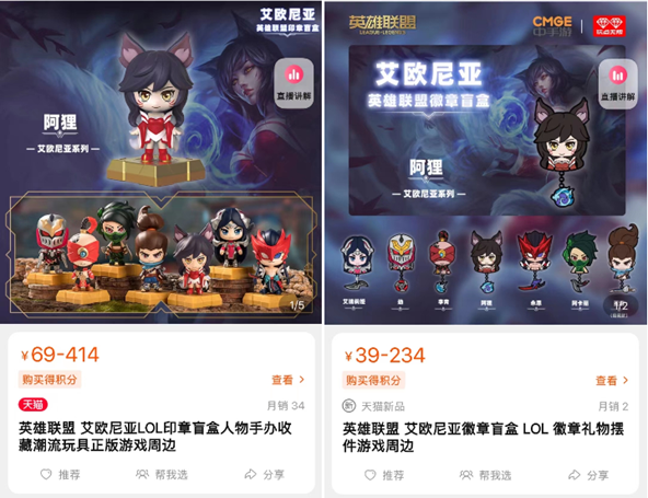 《每日财报》查询“玩点无限”天猫旗舰店后发现,“英雄联盟”系列盲盒销售颇为惨淡,其中英雄联盟印章盲盒月销为34,英雄联盟徽章盲盒月销为2。其他的产品如Sank Toys、星际熊、狐妖小红娘等产品销量均为个位数。