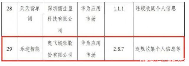 根据通报名单,乐迪智能APP 2.8.7 版本存在的主要问题是违规收集个人信息等,乐迪智能是奥飞娱乐股份有限公司旗下的APP。