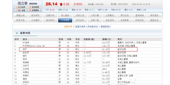 根据东方财富网显示,在信立泰这么些年,陈平并未持有公司股份,目前的薪酬为81.05万,是三位副总经理当中薪酬最少的。副总经理赵松萍的薪酬已经高达171.2万元,副总经理、非独立董事颜杰的薪酬也有127.5万元。并且,无论是加入时间,还是升任时间,陈平都要早于他们好几年。