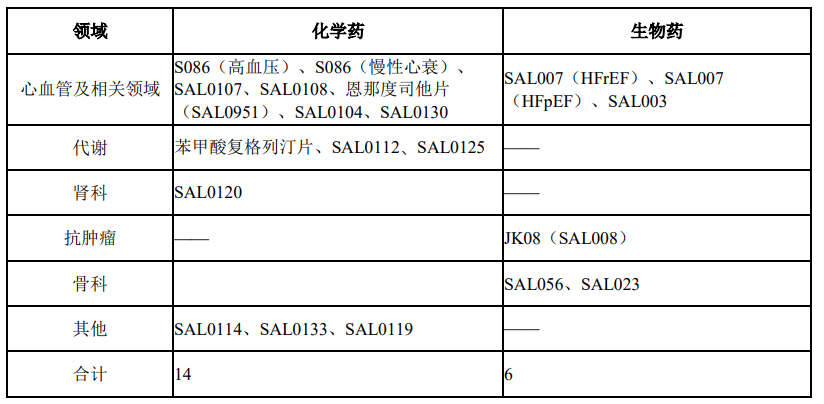 不可否认,这些管线中可能会出现具备一定市场潜力的产品。具体来看,心血管相关的产品仍旧是其最有希望的领域。其中,治疗慢性心衰SAL007,目前正在在中美同步开展临床。
