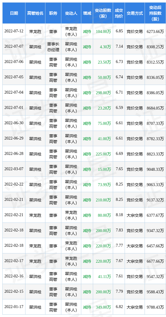 证券之星讯,根据7月13日市场公开信息、上市公司公告及交易所披露数据整理,中电兴发(002298)最新董监高及相关人员股份变动情况:2022年7月12日公司董事束龙胜共减持公司股份104.0万股,占公司总股本为0.1405%。变动期间公司股价上涨1.18%,7月12日当日收盘报6.85元。