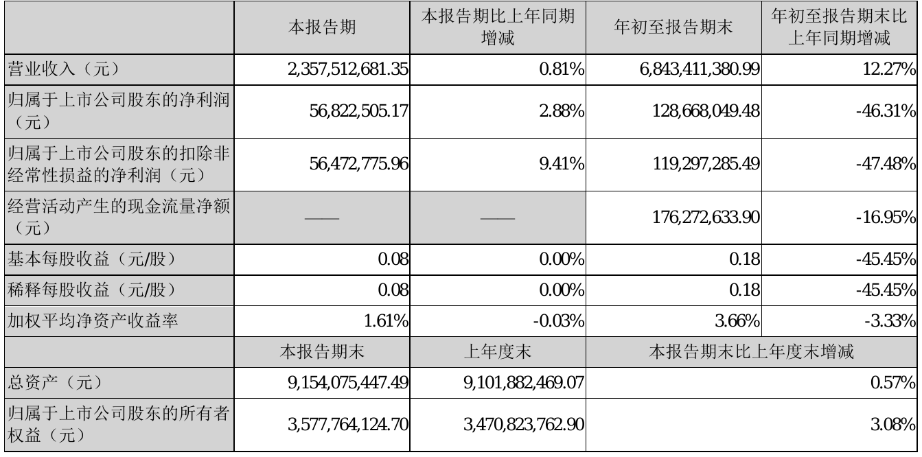 挖贝网10月26日,齐心集团(002301)近日发布2021年前三季度报告,报告期内营业收入6,843,411,380.99元,同比增加12.27%;净利128,668,049.48元,同比净利减少46.31%。