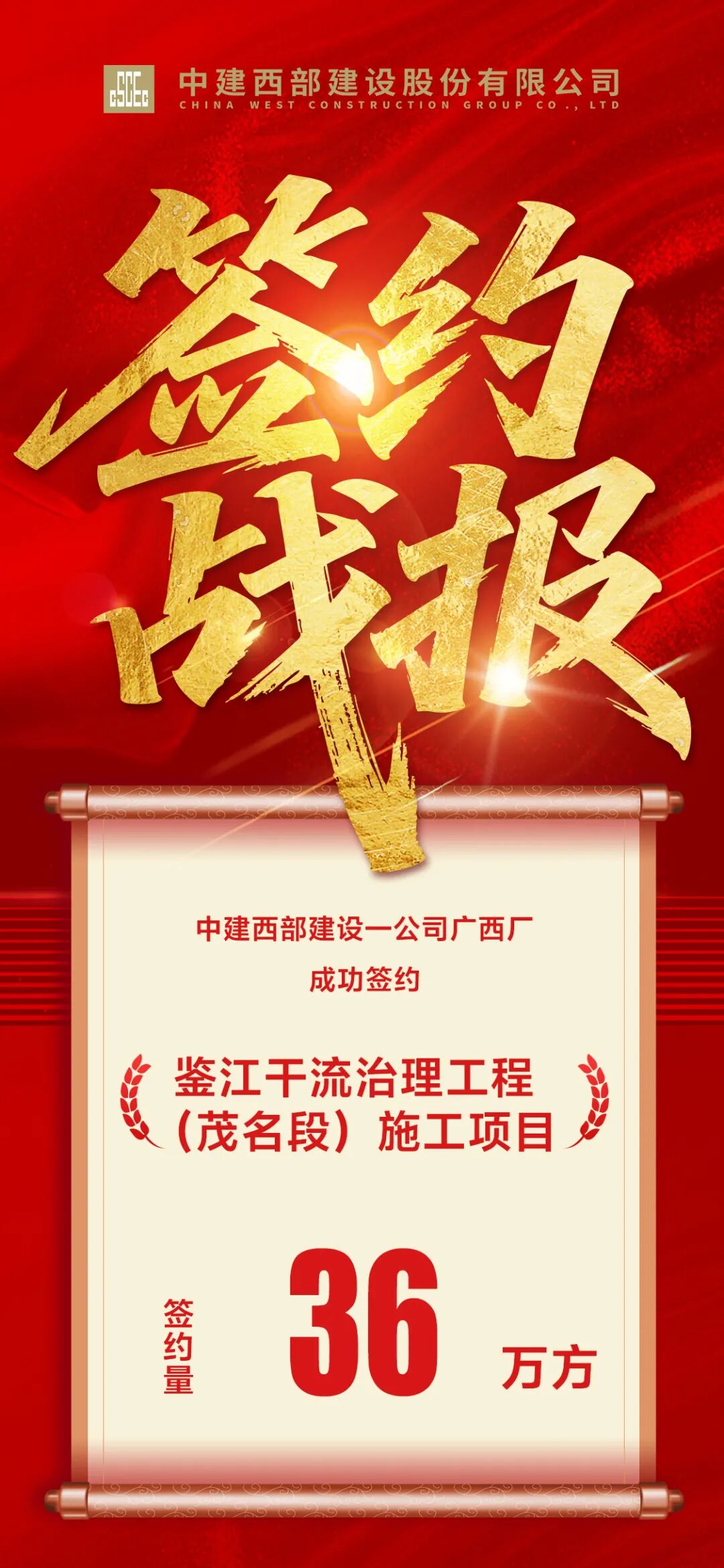 近日,中建西部建设一公司广西厂正式签约鉴江干流治理工程(茂名段)施工(第二次)项目,签约量36万方。