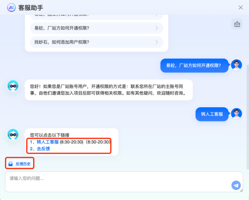 该智能客服已于2025年12月31日正式上线。我们诚挚邀请合作伙伴积极使用,并通过对话窗口或官网“线上反馈”通道提出优化建议。您的每一条反馈,都是我们迭代进步的重要动力。