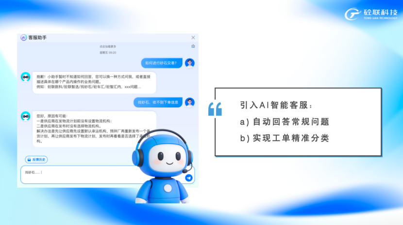为了进一步提升砼联产品的用户体验,中建西部建设砼联科技(下称砼联科技)正式推出智能客服助手,以AI技术驱动客户服务全面升级。